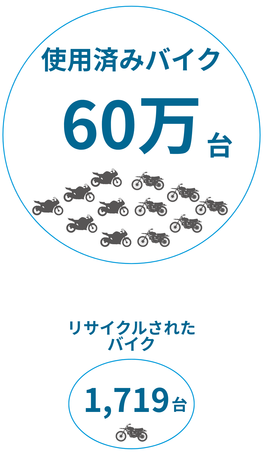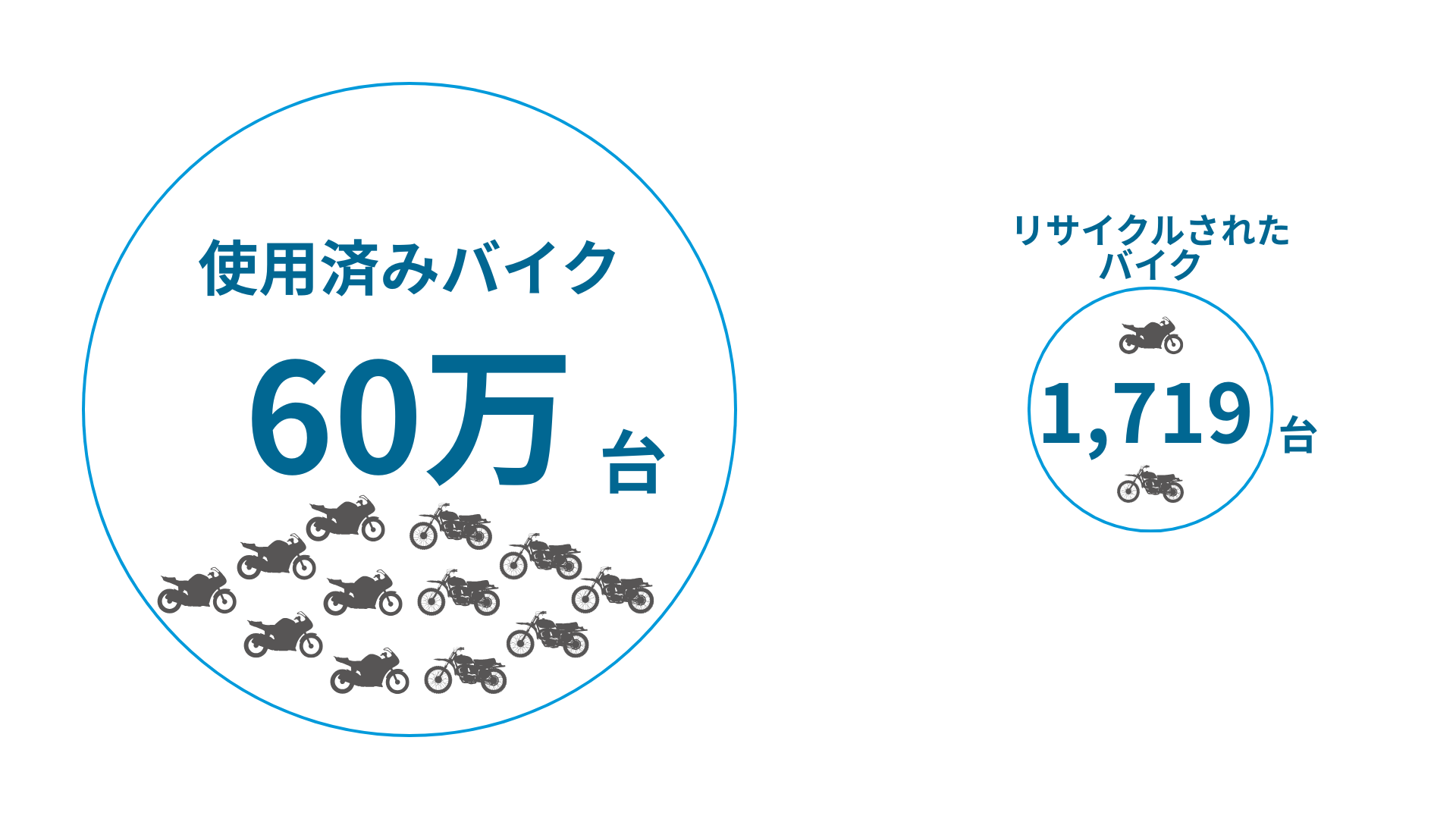 2017年度に出た使用済みバイク60万台のうち何台が再資源化つまり